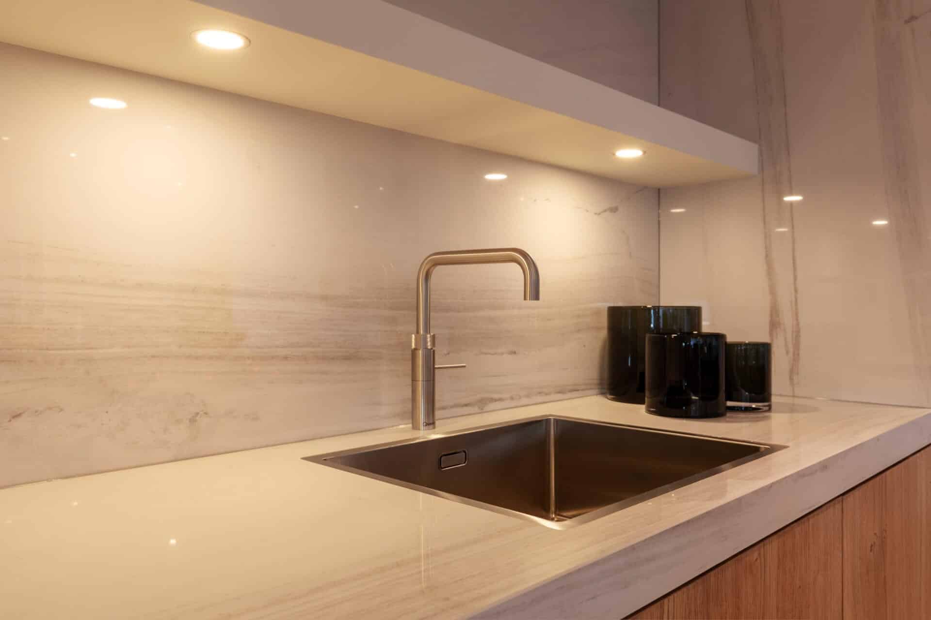 Een belangrijk onderdeel van een keuken is de apparatuur. Deze keuken is voorzien van een Quooker kokendwaterkraan en een moderne Miele apparatuur; luxe ovens, een ruime wijnklimaatkast en een geavanceerde inductiekookplaat. Koken in deze keuken, het is echt een feest.