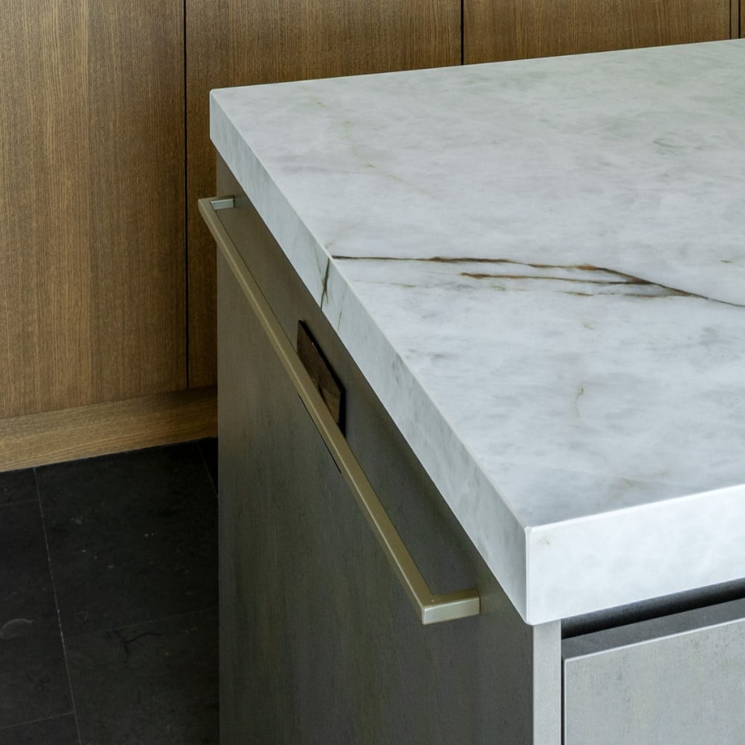 - Keukenapparatuur: Miele ovens, kookplaat met werkbladafzuiging en gunmetal Quooker.