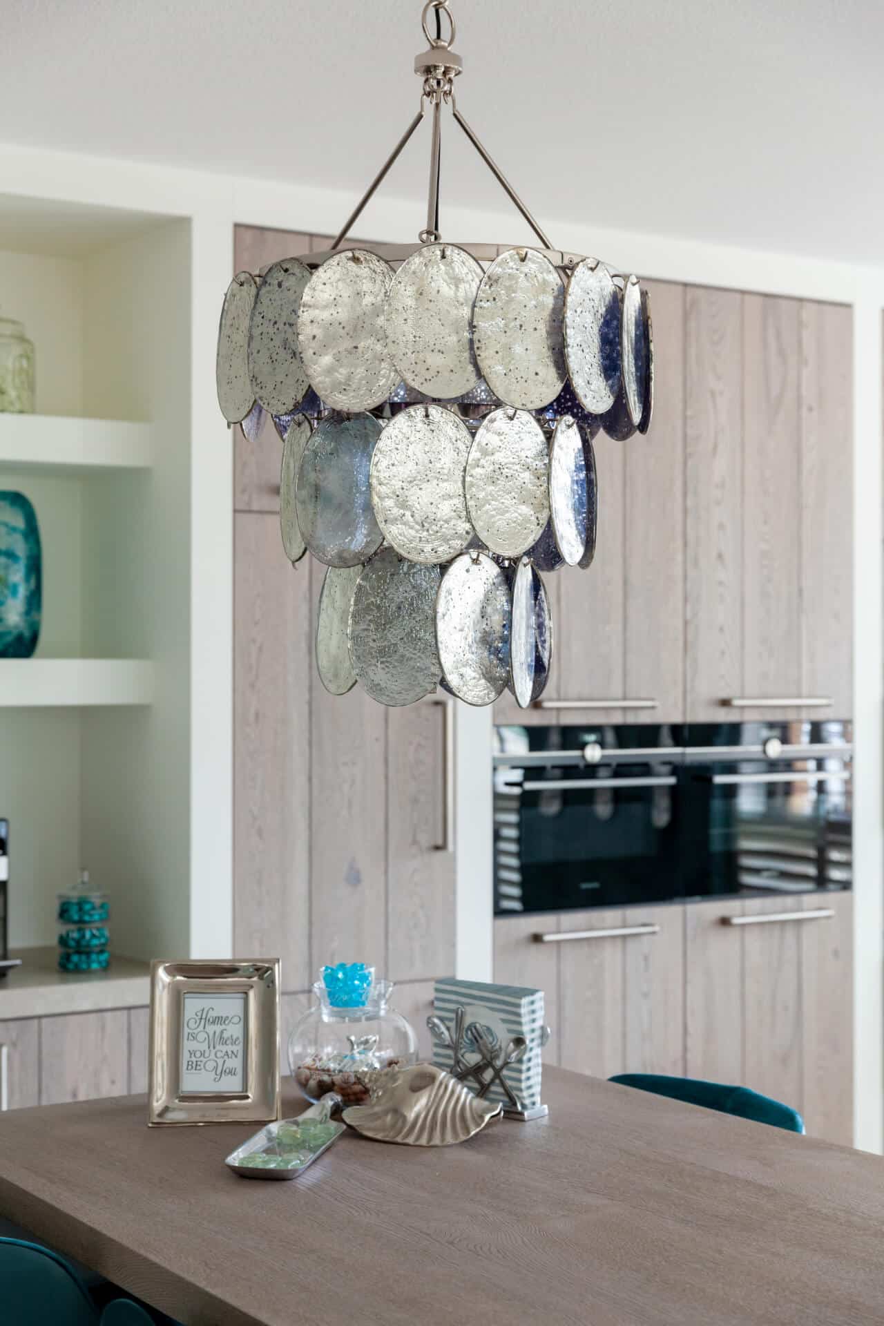 In samenwerking met Eigenstijl Wonen uit Barneveld is het complete interieur tot stand gekomen. Zo zijn de petrolkleurige barkrukken en de PTMD schelplampen afkomstig van Eigenstijl Wonen.